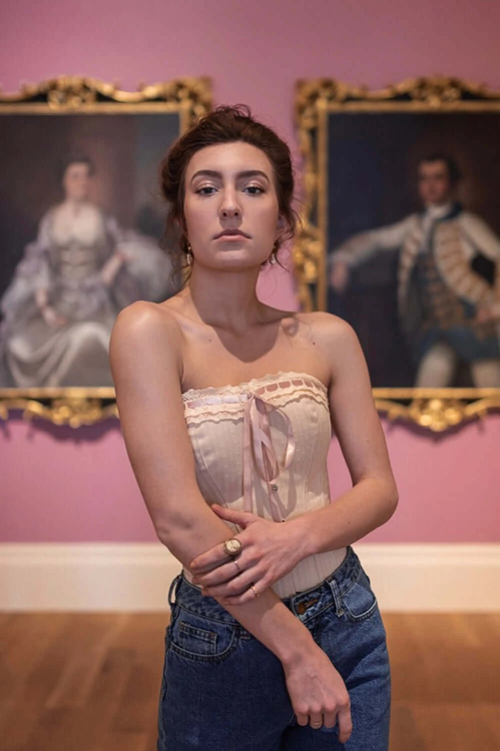 - Corset Design Features: Historically Inspired, Front Ribbon Bow, Lace Trim, Satin Piped Seam Detail