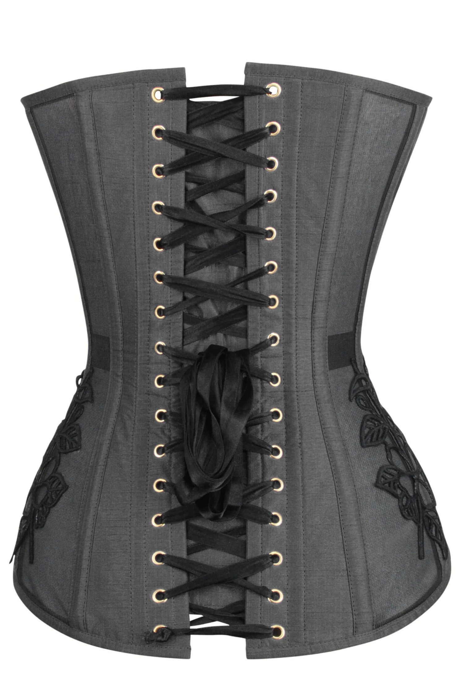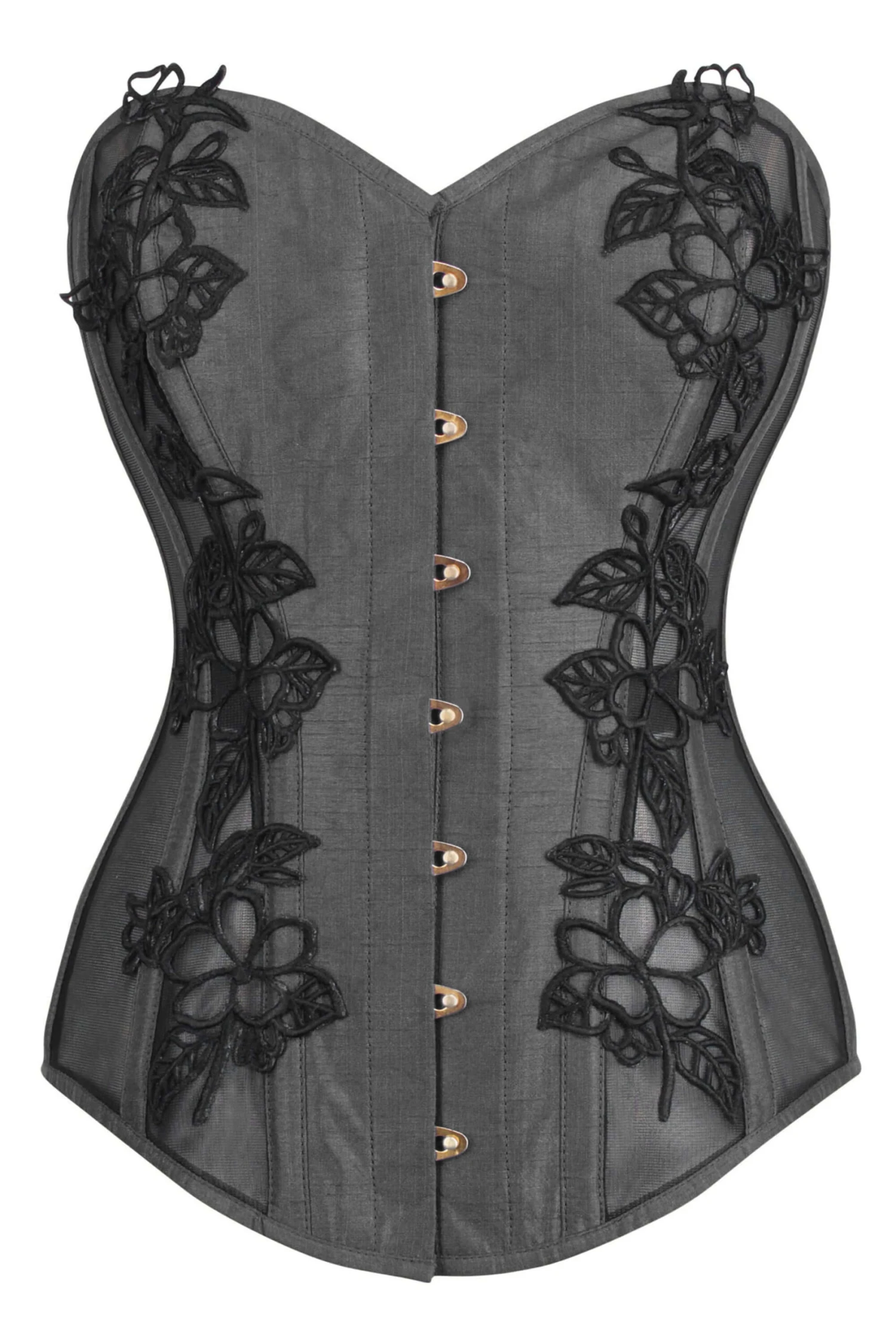 Our sweetheart neckline overbust corset in black can be worn as underwear or daring outerwear, adding an edgy and romantic look to your night. Offering a waist reduction of up to three to four inches, this lightweight corset has stunning attention to detail. With embroidered lace overlay and alternate panels of mesh and satin, this corset is pure glamour, with a flattering silhouette.
