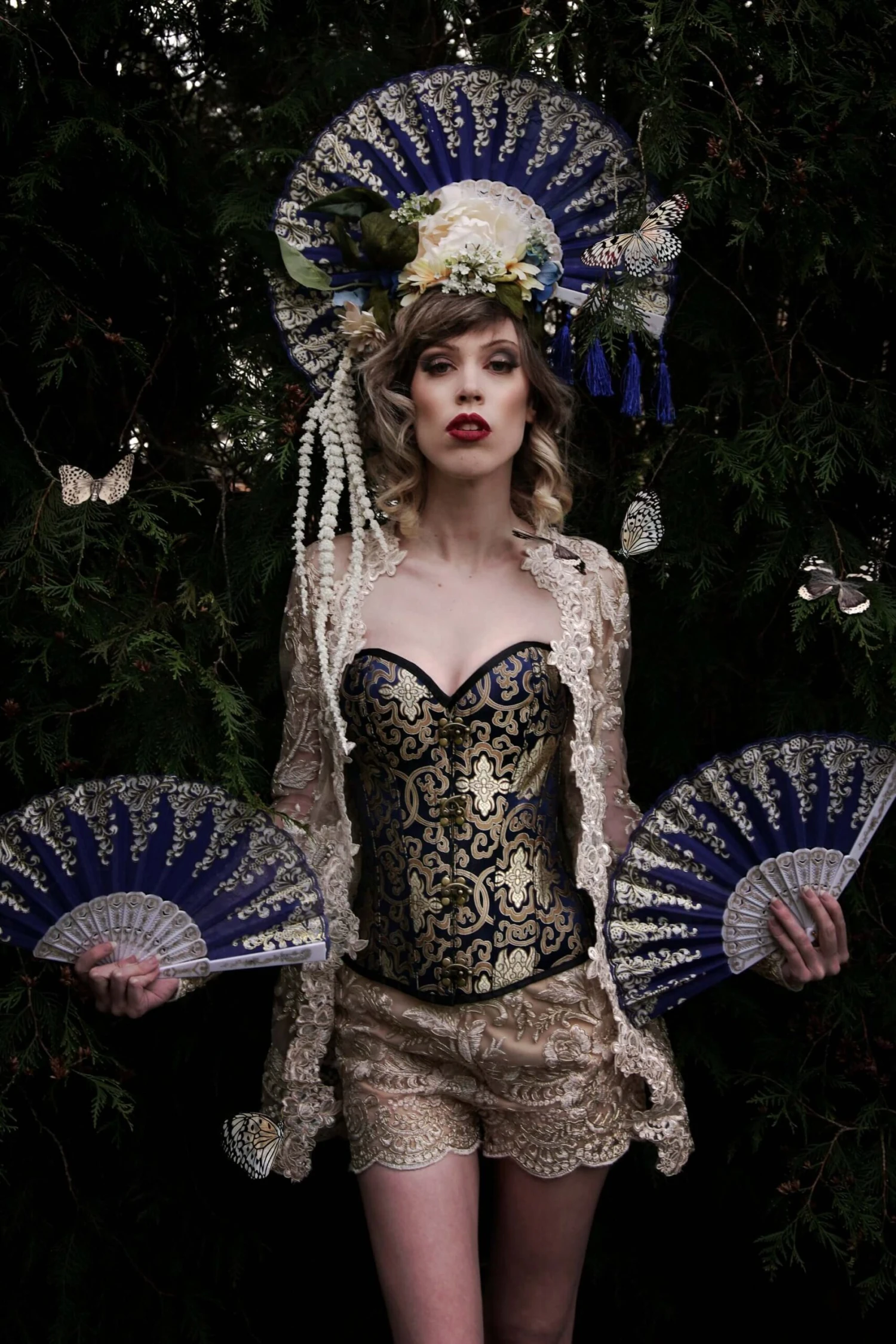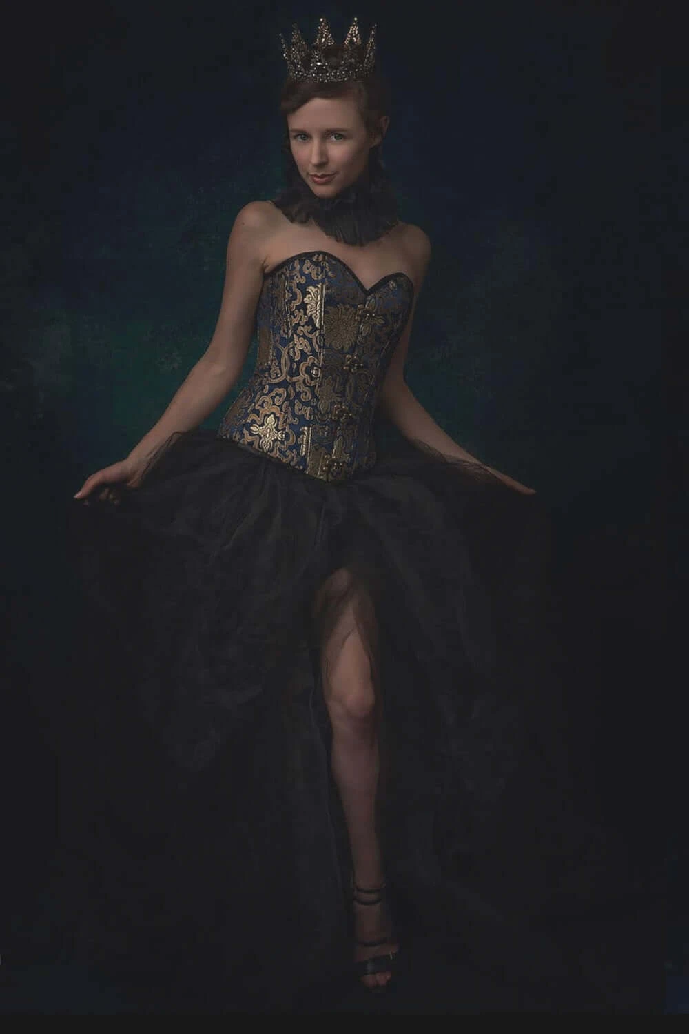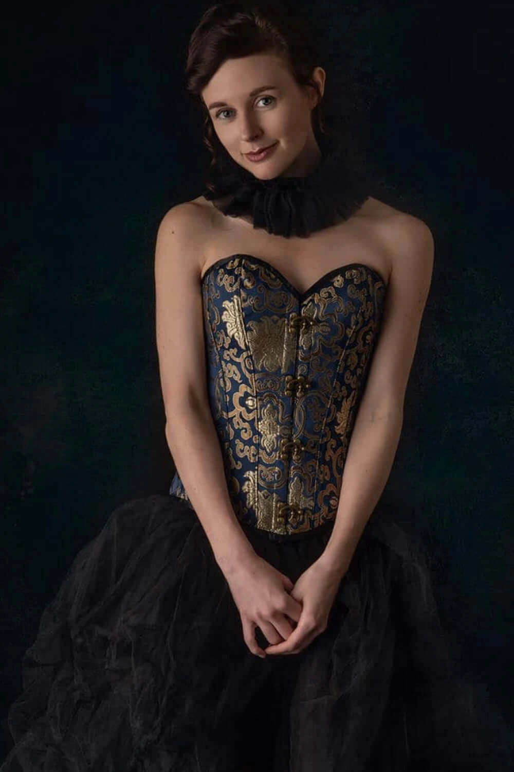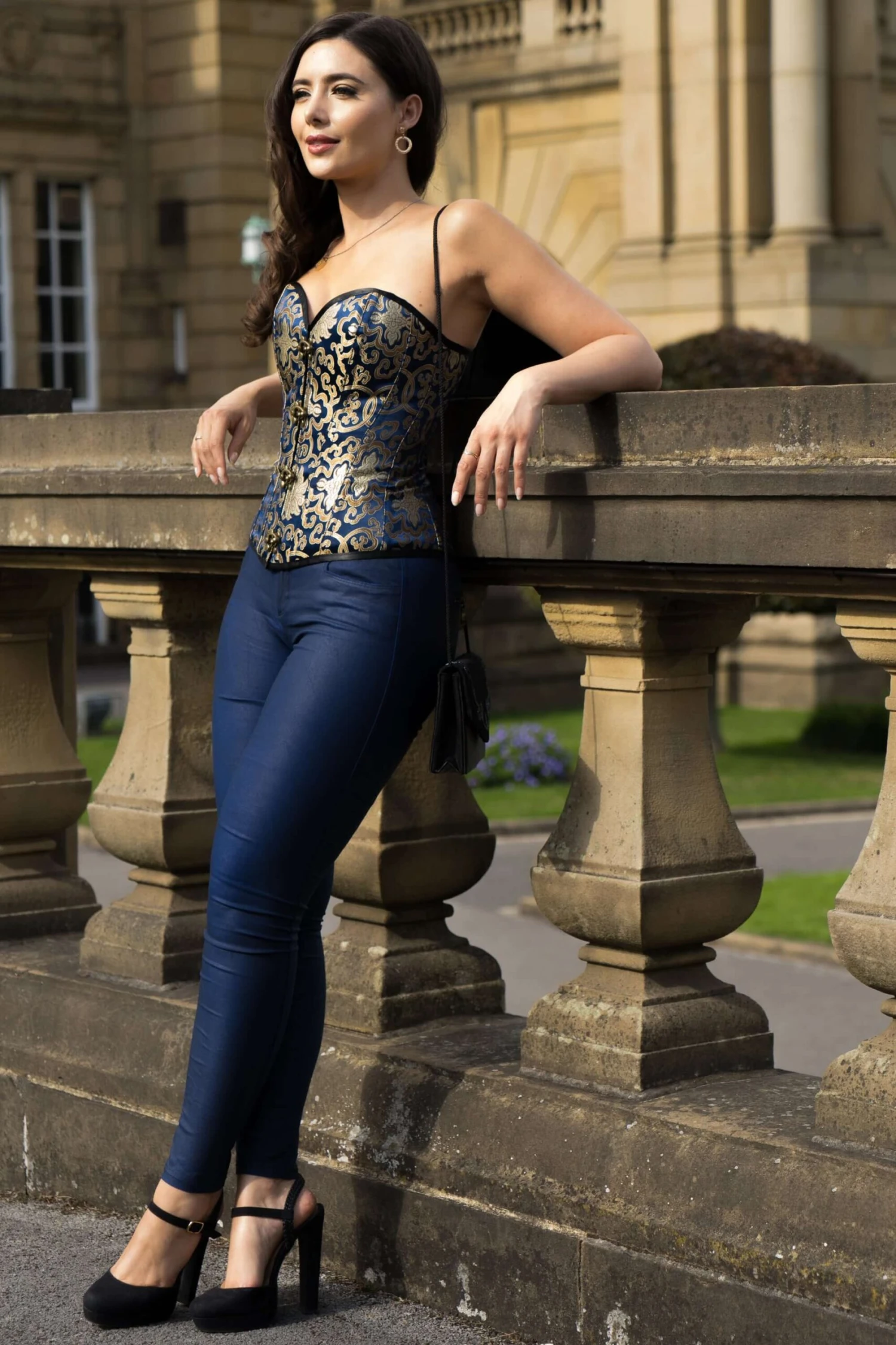 Inspired by the Regency and Victorian periods, this gorgeous Instant Shape corset is crafted in a fetching blue and gold brocade pattern, adding extra femininity to an already stunning garment. Internal steel bones are very light, allowing prolonged wearing and command an instant waist reduction of 1-2 inches. Paired with a long skirt, this corset is perfect for formal occasions and you’ll definitely stand out thanks to its unique colours. This corset will help improve the ‘golden’ waist to hip ratio with very little fuss; you won’t need a friend to help you into (or out of) this garment so you can pair it with as little or as much of your current wardrobe to create many different looks.