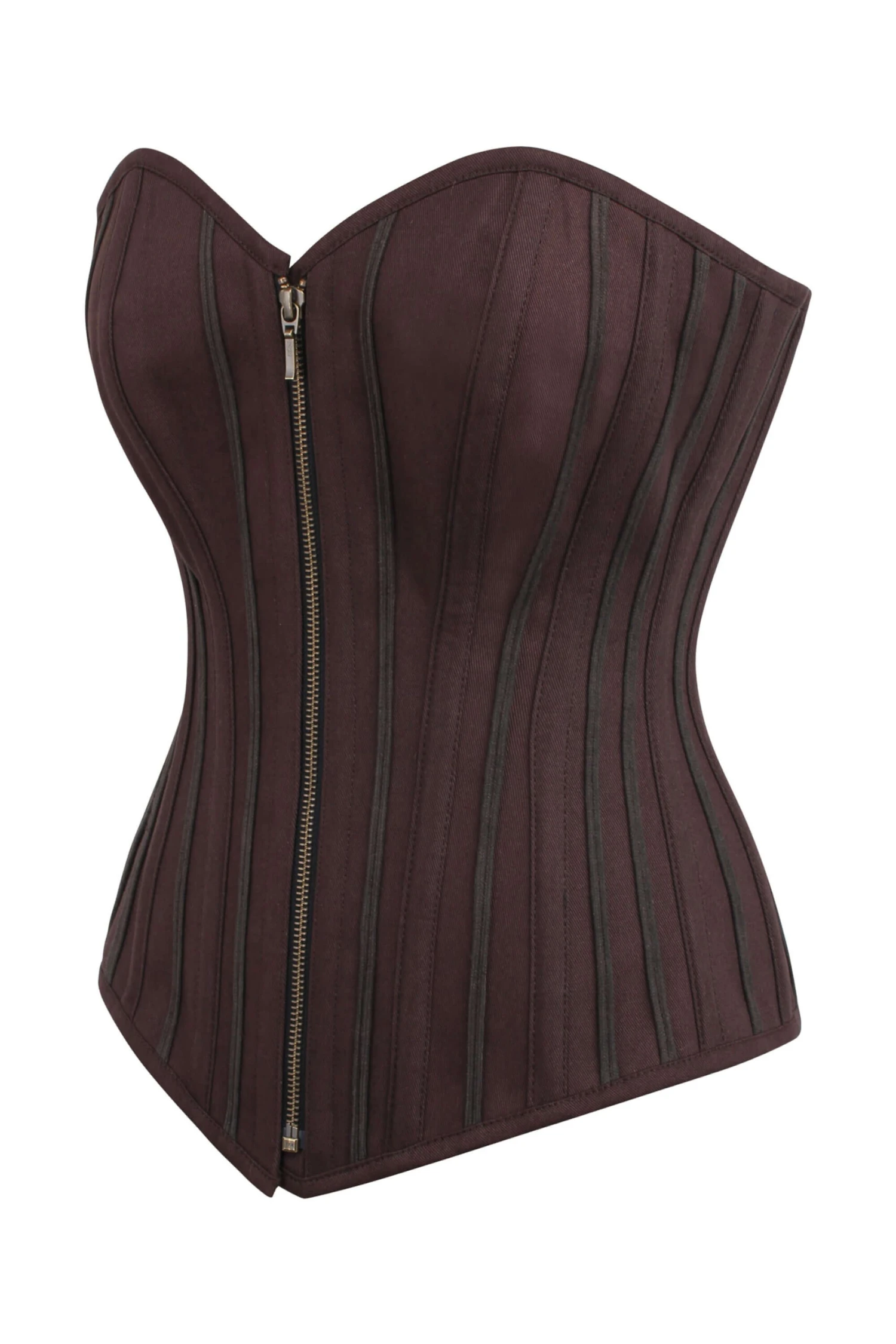 This Brown Overbust Corset with Zip fastening is very versatile and is a great choice for anyone new to corsetry. The corset is fitted with both spiral and flat steel bones which will enhance your figure and reduce your natural waist size and help create the perfect hourglass silhouette.