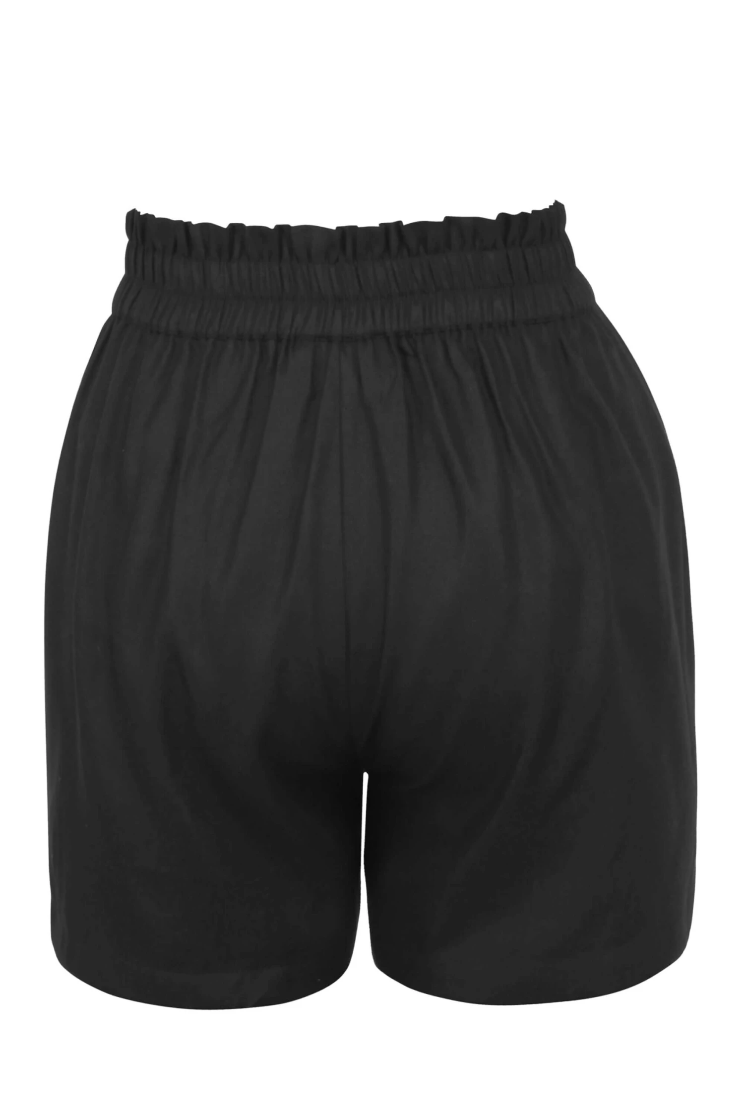 Simple black viscose shorts with a paperbag waist and pockets. Calla will be an easy addition to your wardrobe. Dress them up for the evening with a simple black overbust and heels or style an effortless co-ord and pair it with our Blossom crop top.