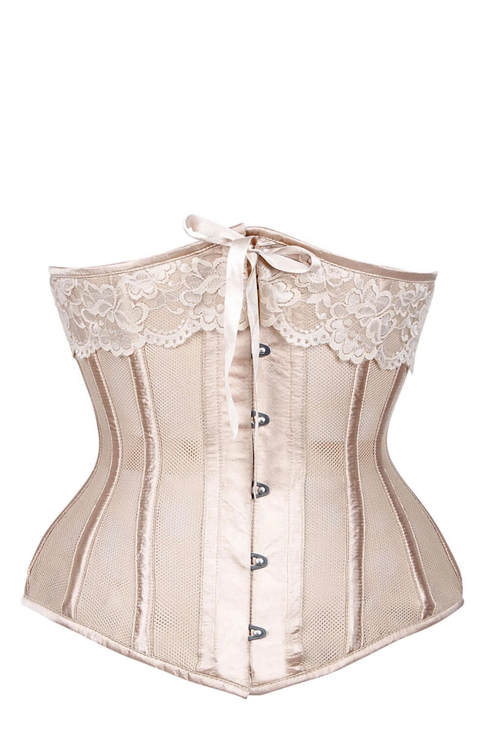 OurΒ classic bridal Waist Taming underbust pattern has been re-invented with the introduction of super fine mesh panels which will, not only, make the corset more lightweight and breathable but also less bulky. It’s not all practicalities though, we have ensured the corset remains perfectly pretty for your special day with the addition of beautiful ribbon trims and bows and champagne satin boning channels.Β Also recommended as a lighter weight waist training piece.