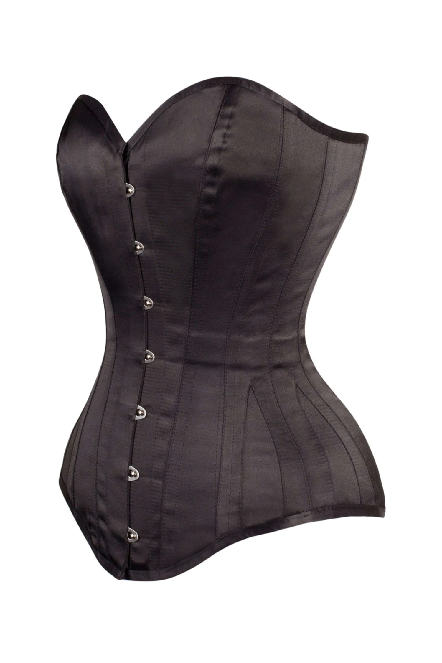 A stylish and voluptuous long black satin corset with sweetheart bust line to make it both flattering and practical. Single spiral steel boned to create that flowing hourglass figure. Because black goes with everything this is one of our most versatile corsets – day to night, formal to casual – work it! This corset is from our mid-strength Waist Taming range. It allows a 3-4″ waist reduction and is easy to take on and off with or without help. For those wanting a more elaborate waist reduction, be sure to check out our Expert Waist Training range for an extra couple of inches off your natural waist size. Those new to the scene may want to discover their new favourite garment by visiting our Instant Shape section – lighter than our other corsets, they still give a 1-2″ immediate waist reduction.