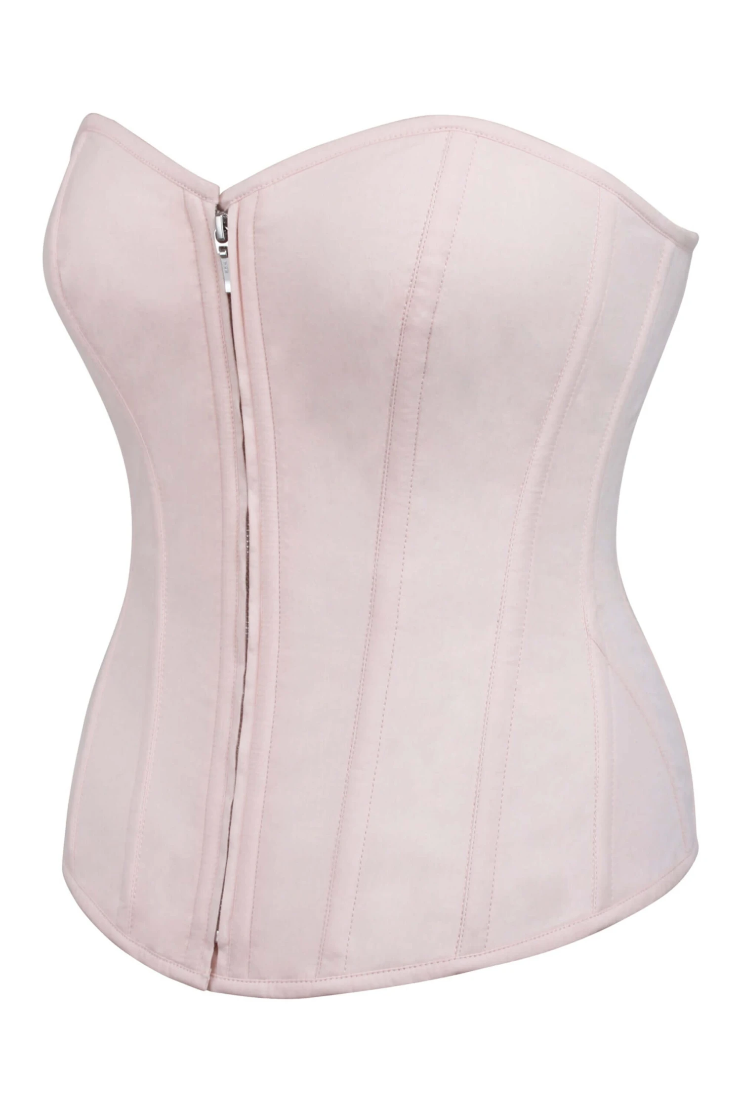 This elegant soft pink overbust corset will be an enduringΒ addition to your wardrobe.Β The colour teams perfectly with so many of our separates andΒ is one of our most versatile pieces. The popular hidden zip front gives it a seamless look but add the Dahlia Shoulder Strap in prairie pink to transform it into a pretty summer top.