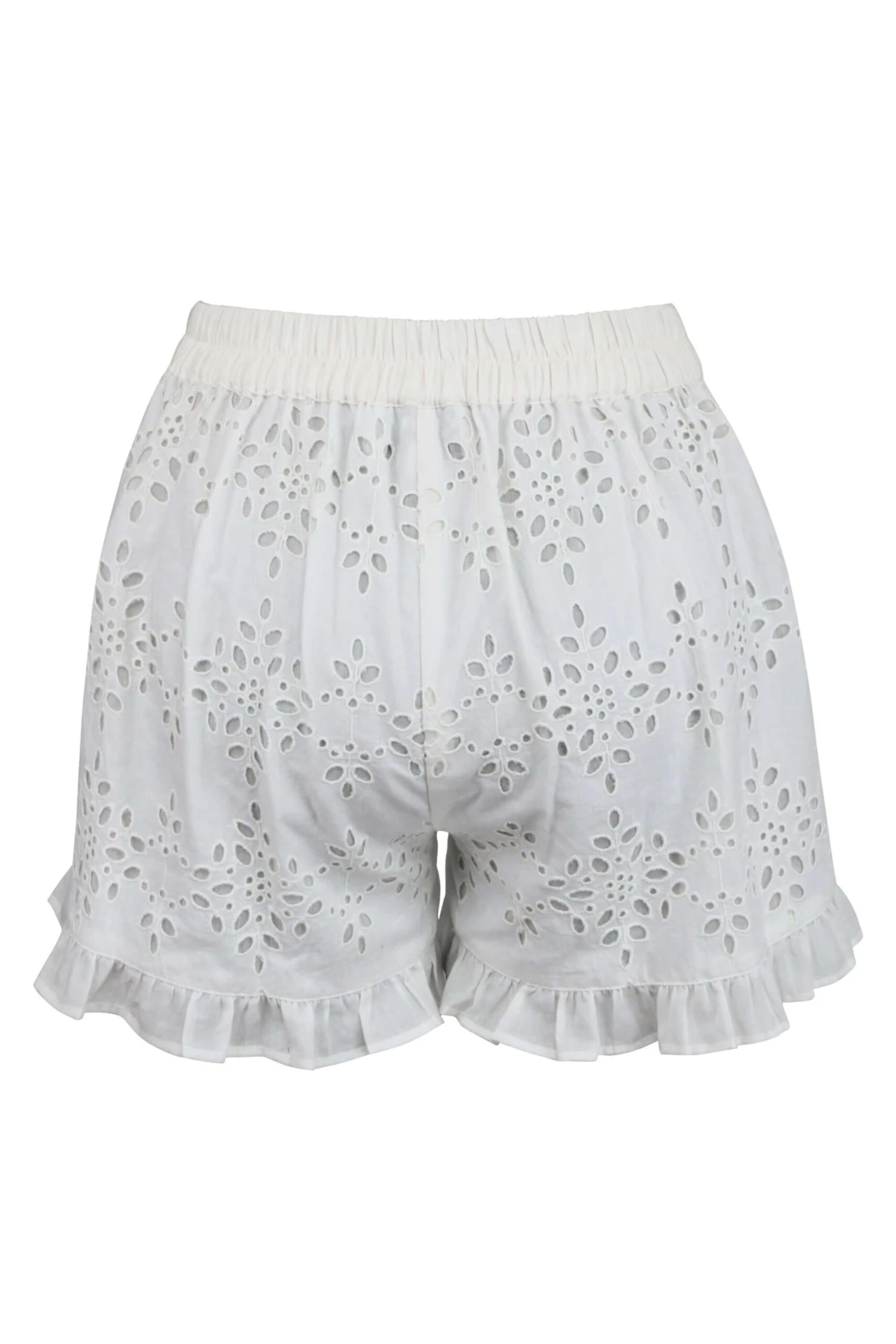 Feminine and fresh, the Daisy shorts in broderie anglaise have a pretty frill hem and a beautfiul self tie belt. Wear these shorts with our Delia crop top or one of our stunning broderie anglaise corset tops.