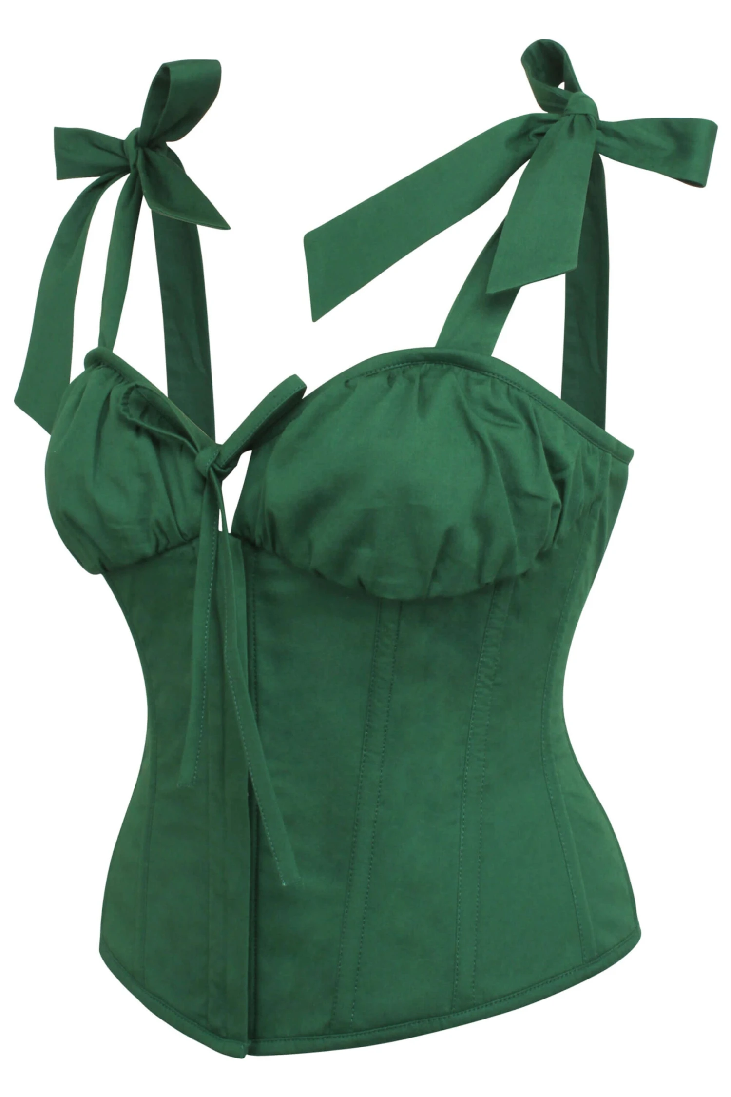 For those of you who prefer underbust corsets, this could be the perfect corset top; this piece is constructed with a traditional underbust with a hidden busk. The soft cups allow forΒ a variety of bust sizes and the adjustable straps provide support. The Heritage Green colour is unique and is further complemented by our Floral Explosion print. Take a look at Style Your Look for outfit inspiration.