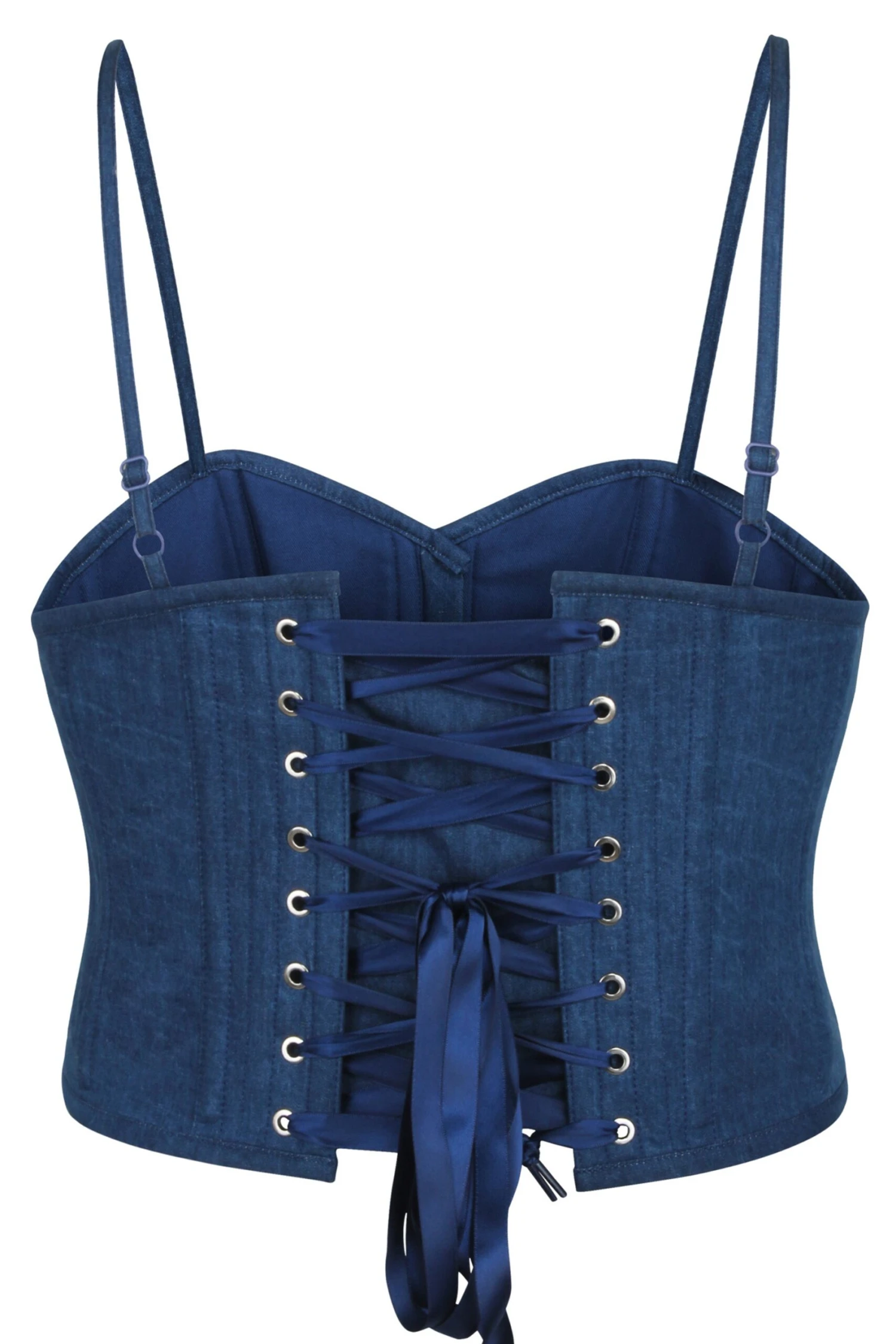 The Delia cropped top in a classic blue Chambray is bound to become a favourite piece in your wardrobe. Style with the Sammy skirt for a double denim look or wear with ease with our floral skirts and shorts. Easy to put on thanks to the simple zip front and fully adjustable spaghetti straps.