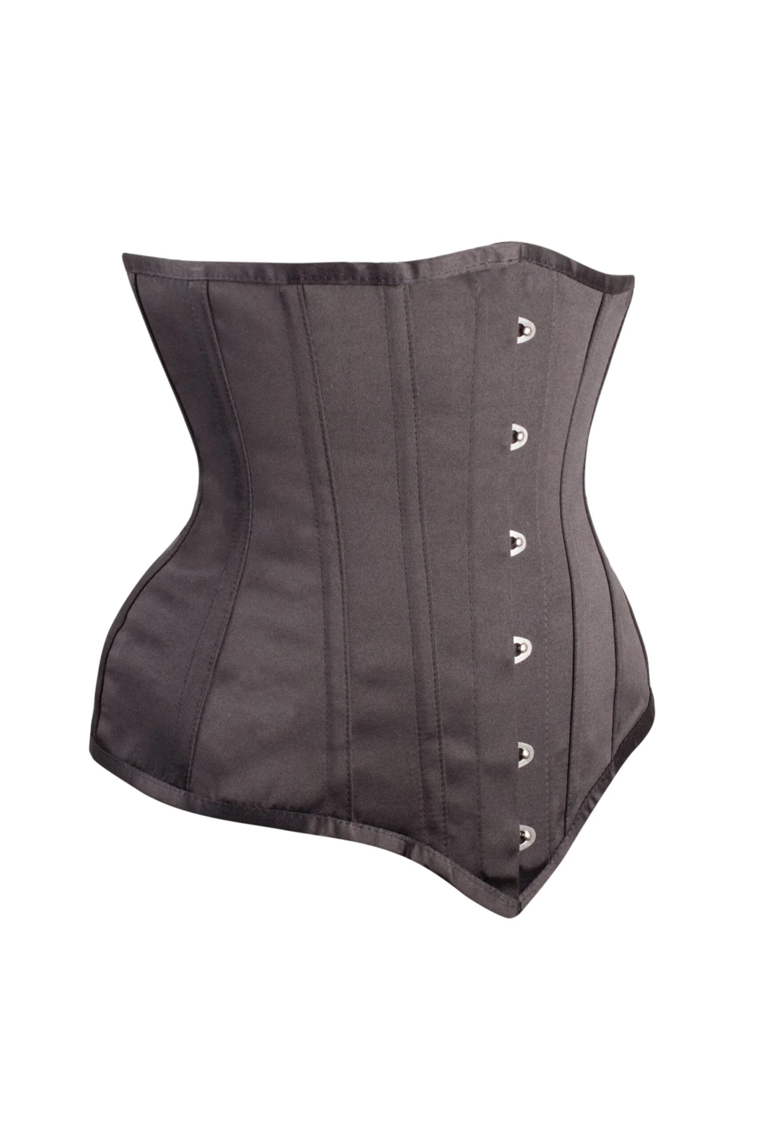 Our entry level Instant Shape black satin longline underbust is perfect for you ladies with a longer torso – ideal for ladies 5′ 6″ or taller. The curved top edge sits beautifully under your bust-line and the longer pattern really smooths the figure. Instant Shape corsets are a great lightweight option due to a narrower and lighter busk closure and single spiral steel bones at each seam. It can reduce your waist up to 2″; perfect if this is your first corset or if you are an experienced wearer and want something that is both lighter and extremely comfortable. It comes with ribbon lacing at the back that is easy to conceal underneath your outfits.