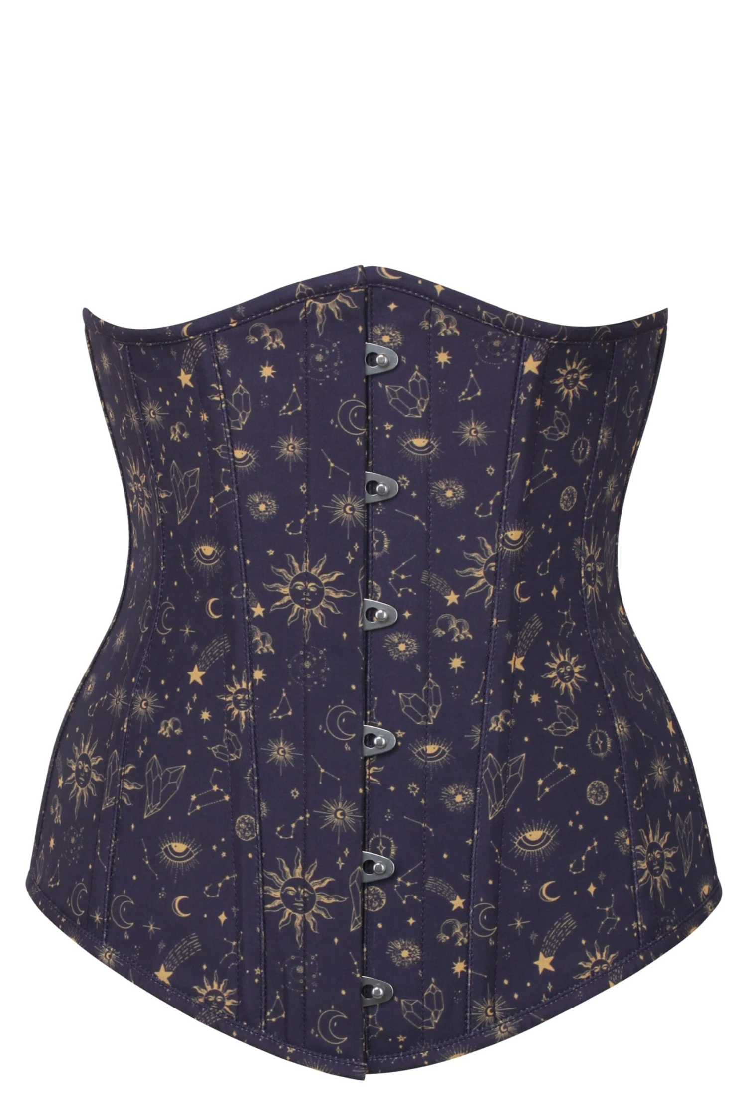 - Corset Design Features: Indigo And Gold Astronomy Print