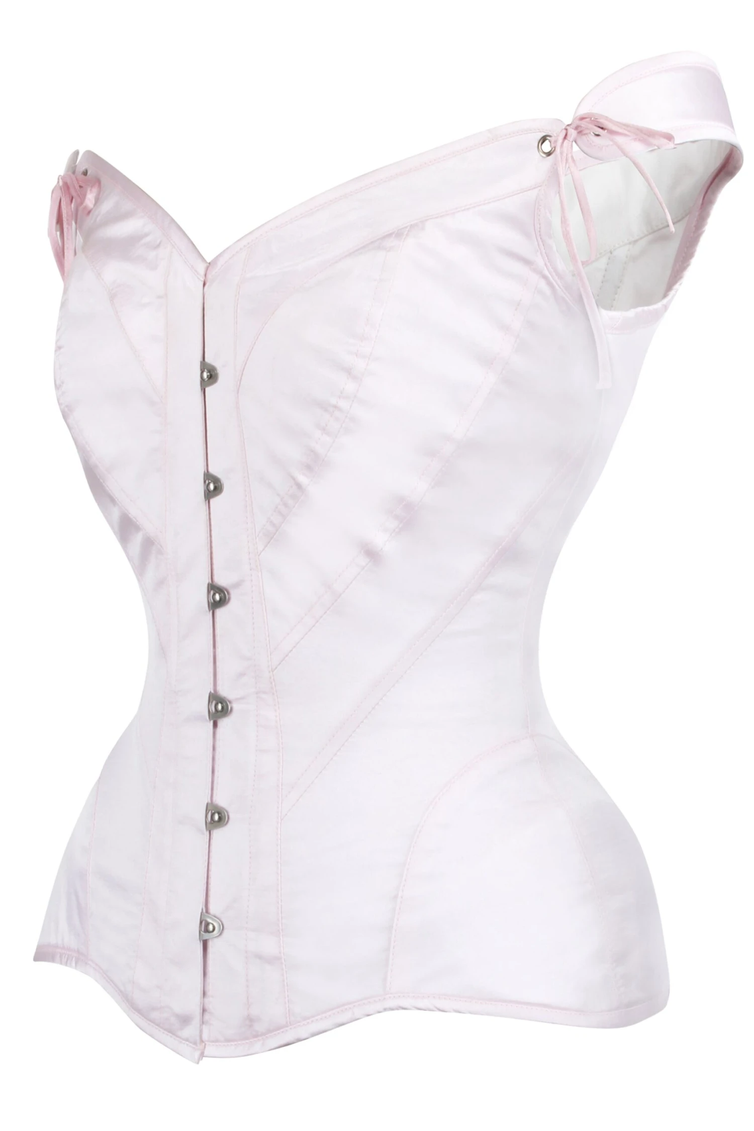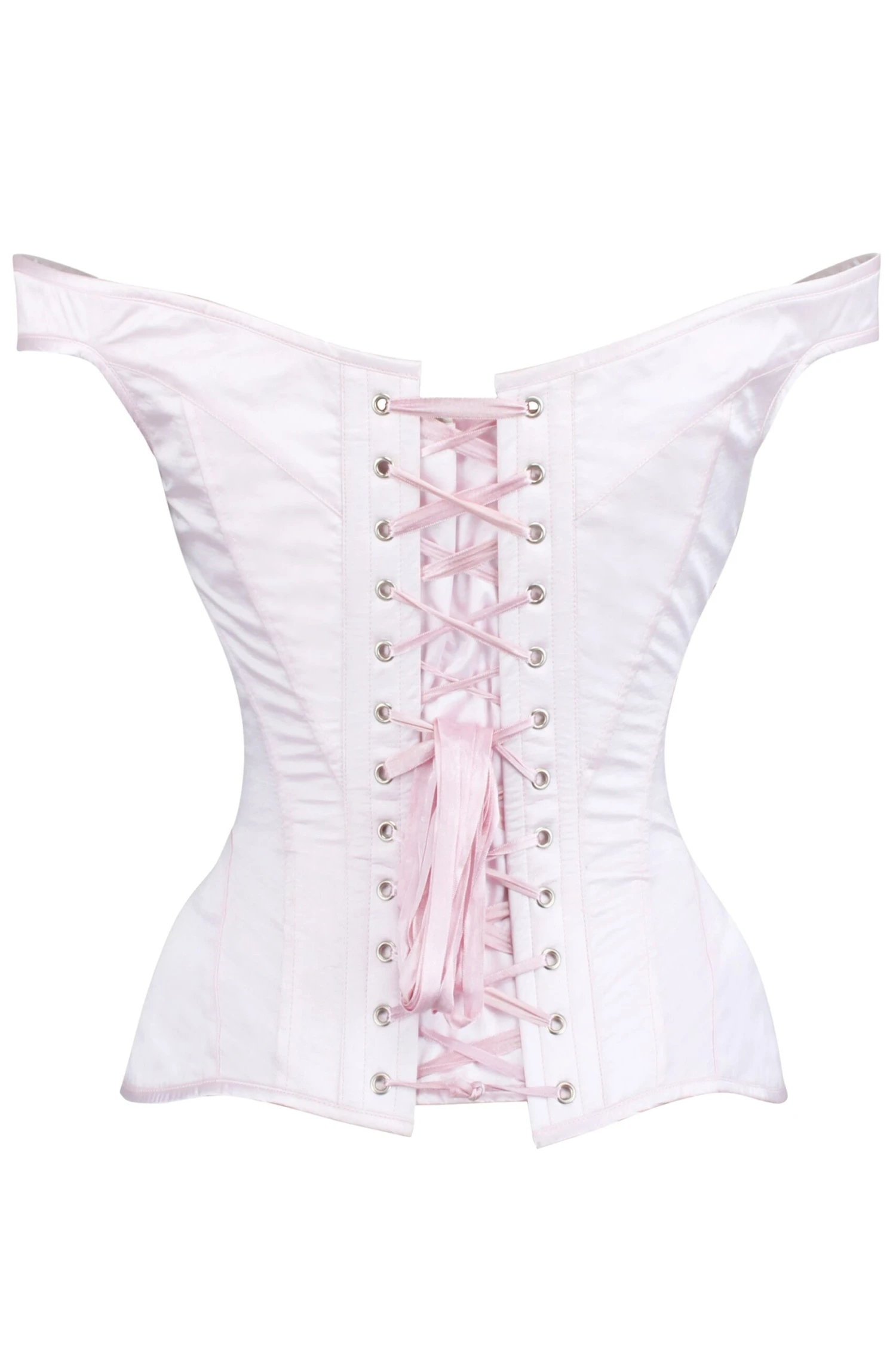 As luxurious as its namesake with its sleek satin finish and exquisite detailing. With an elegantly shaped front and sculpted hip panels, the flattering pink overbust bodice is perfect for outerwear and is certain to make a bold style statement.Β With an off the shoulder style, the corset has a ribbon back lacingΒ for the perfect custom fit, with the smooth satin fabric giving you a streamlined silhouette. Dainty ribbons at the shoulders help to make this pieceΒ a classy addition to any corset collection.