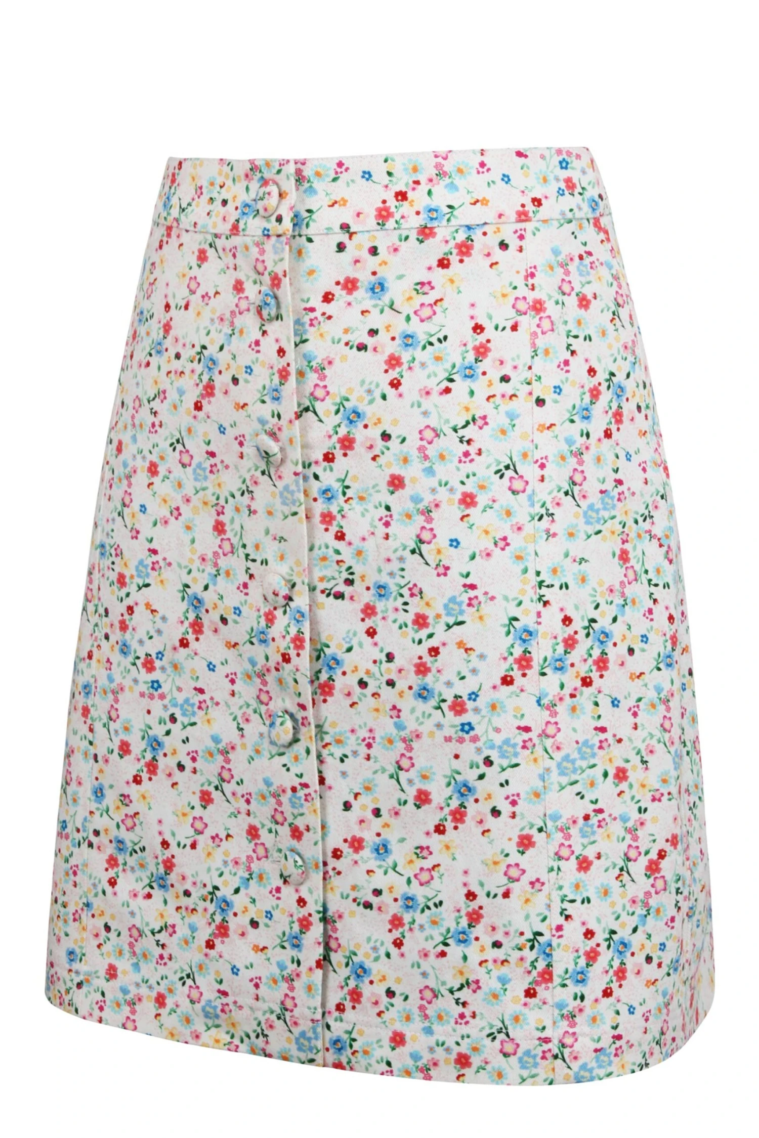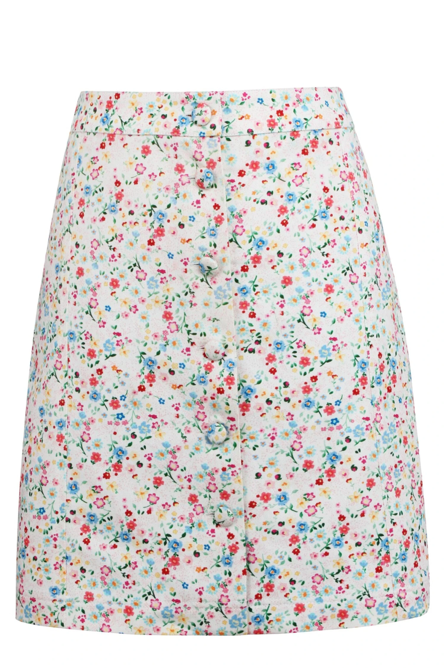 Poppy skirt in Ditsy print is fun and fresh. The heavy cotton twill provides good structure for the A-line shape. Style with our matching overbust corset or a pretty crop top for a striking co-ord.