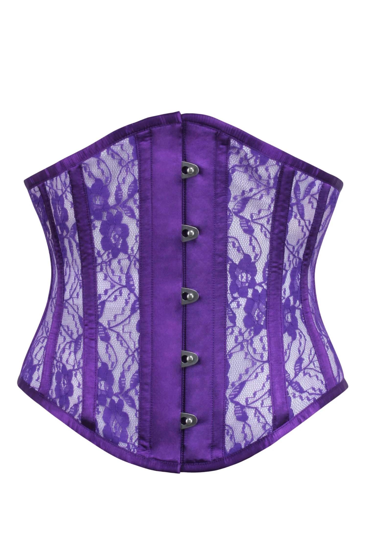 A simple but beautiful Underbust Corset in a purple fabric with Lace and Mesh panels, this makes the corset more lightweight and breathable whilst still allowing you to achieve a stunning hourglass silhouette. A beautiful piece, which easily adds a pop of colour to any outfit instantly.