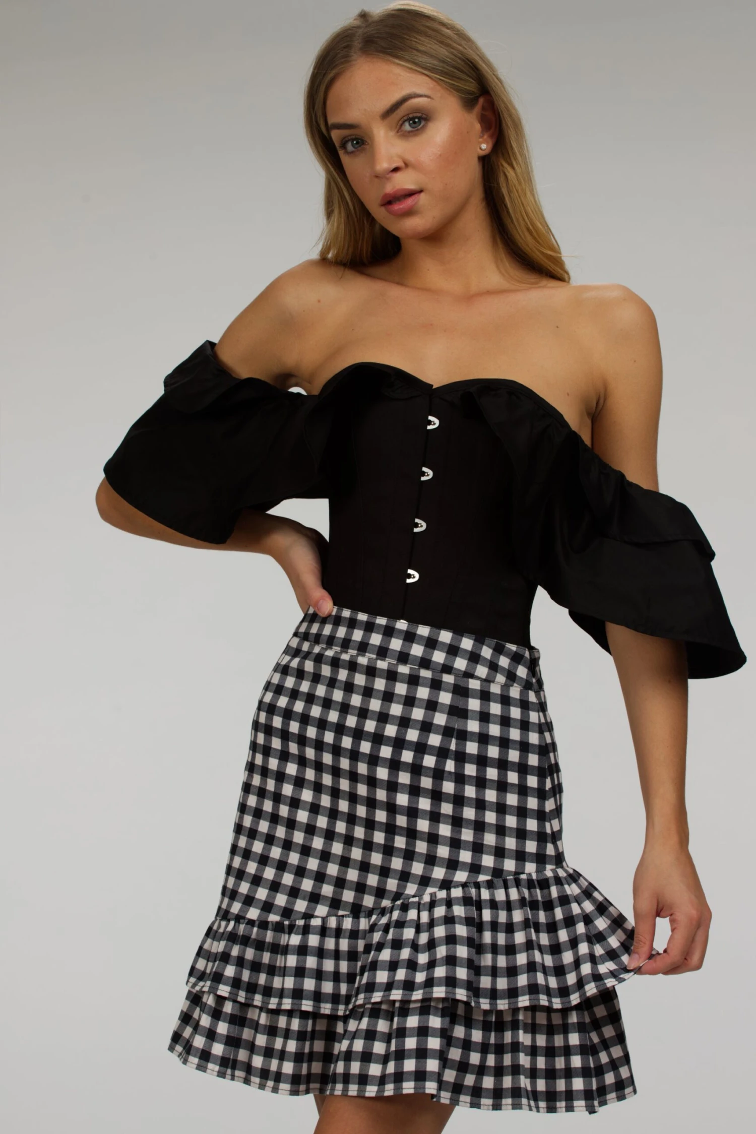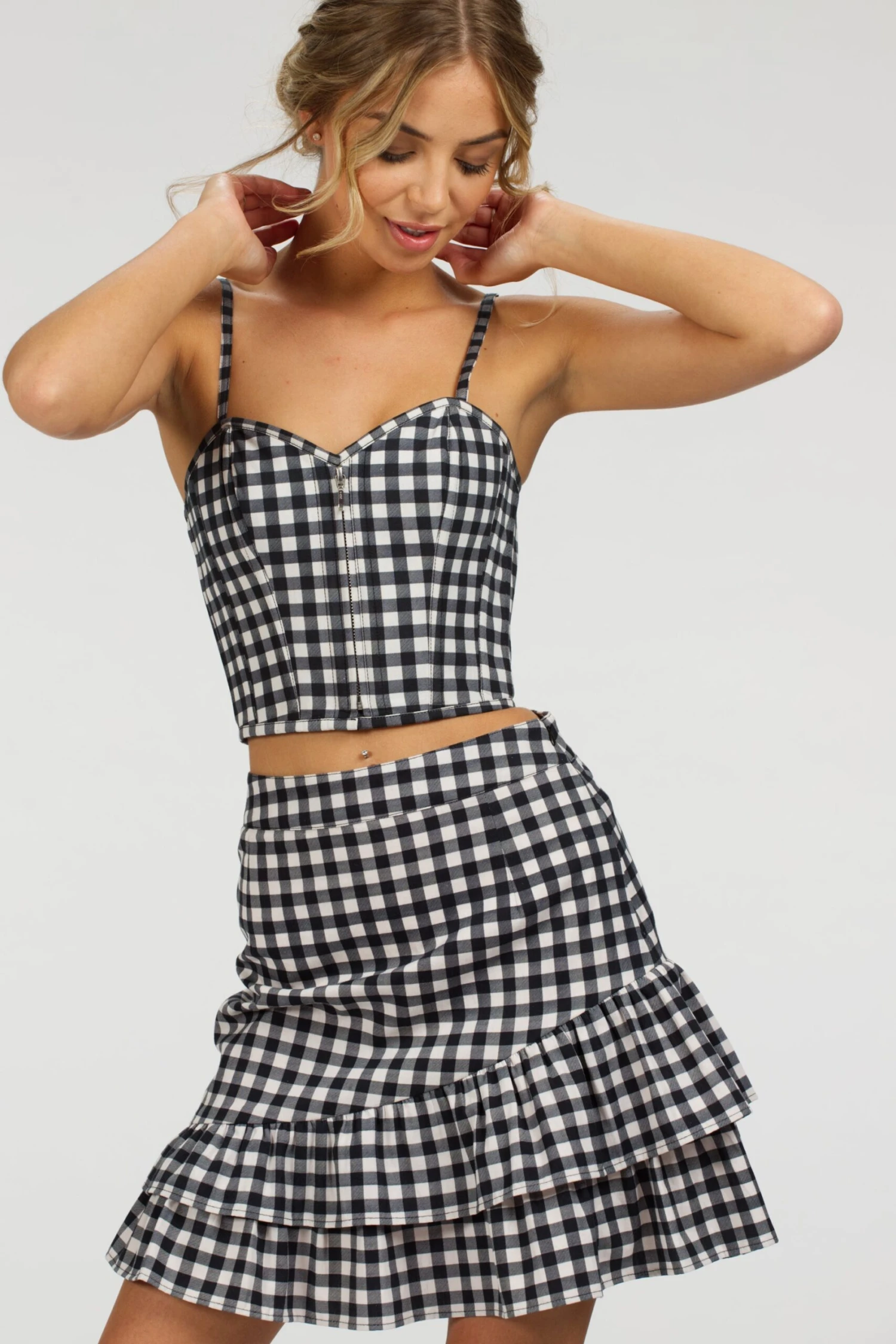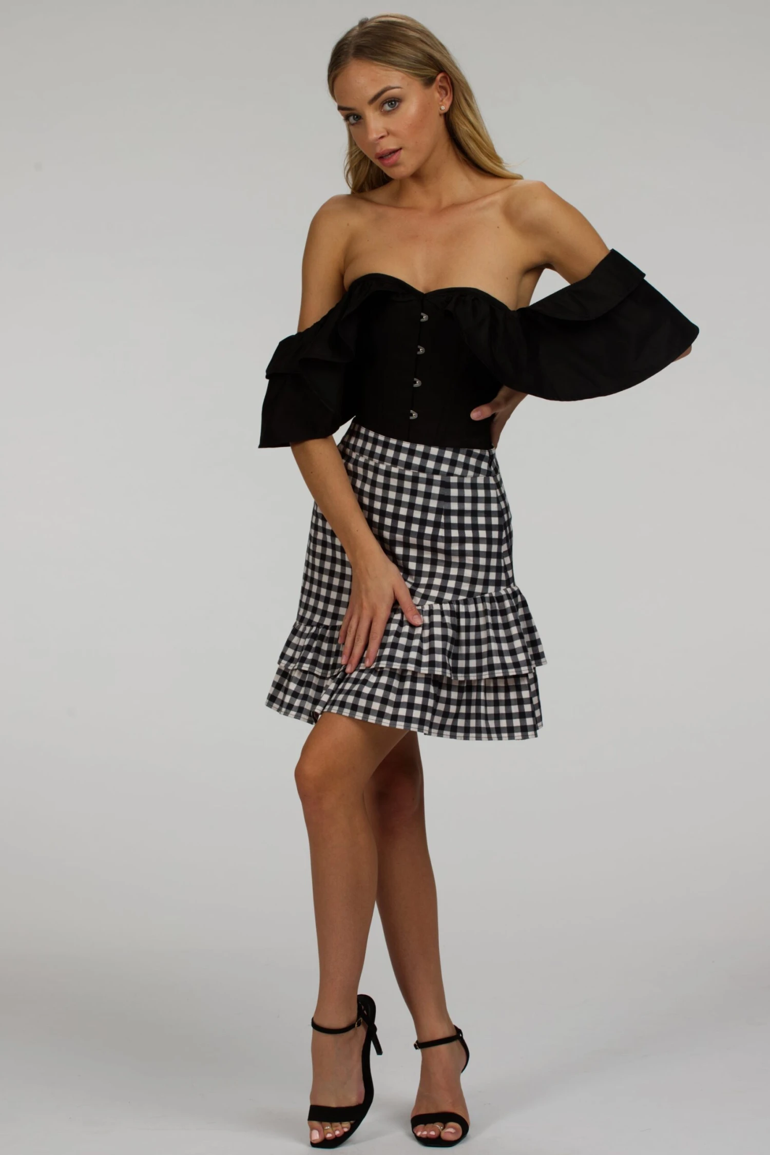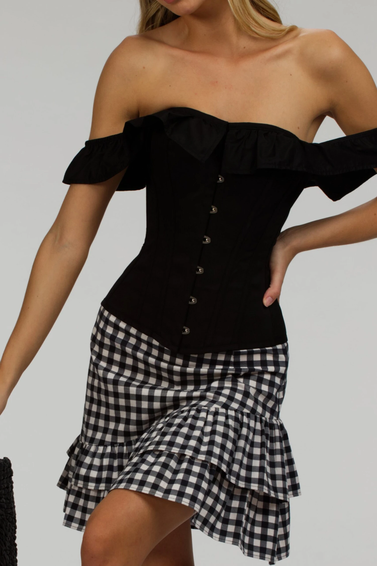 This perfect little mini skirt is going to work hard in your wardrobe. Style it with any white and black top or corset from your existing wardrobe or re-create one of our fresh and modern looks with our cropped corset, Delia, and corset inspired top, Liana. You will want to wear it all summer long.