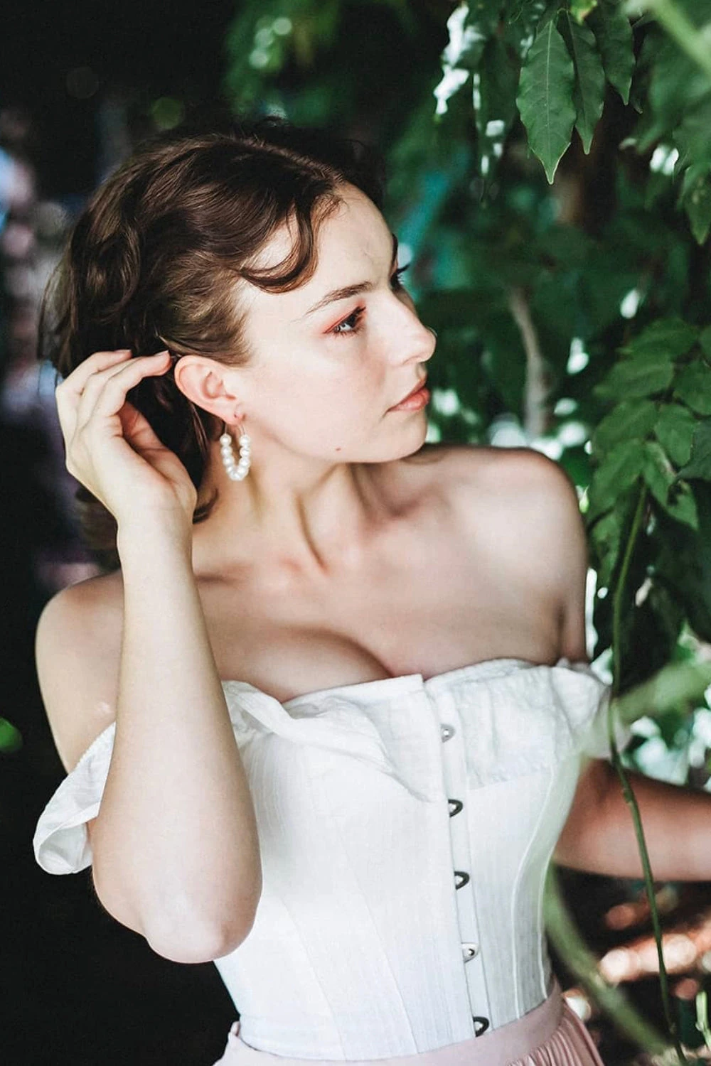 This Corset Story favouriteΒ from our Instant Shape range is now available in this pretty textured white cotton.Β This corset features elasticated ruffled shoulder straps as well as our spiralΒ steel boning for supreme comfort and flexibility. Complete with modesty panels front and back as well as suspender loops, this corset will never go out of fashion.Β